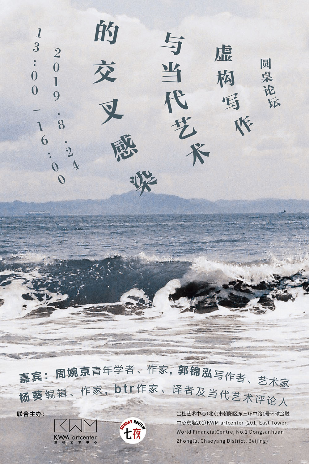8月24日下午1点至4点,金杜艺术中心携手独立艺术批评平台“七夜”共同发起“虚构写作与当代艺术的交叉感染”圆桌论坛。届时,将邀请同时活跃在艺术界与文学界的几位嘉宾,以他们的具体实践来测量两个领域的边界与其交叉地带。